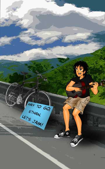 Just like The Kidnapping, Double Fugue is a full formed novel with many interesting characters and plot twists that will keep you guessing and on the edge of your seat! The pdf edition is exactly like a hard cover book. The edition has a unique graphic layout by Kurt Eberhardt and 43 full color illustrations by Ricardo Carmona. There is a special bonus musical score to an arrangement performed by Daniel and his friends during the story. There is a comic teaser above that introduces Double Fugue.